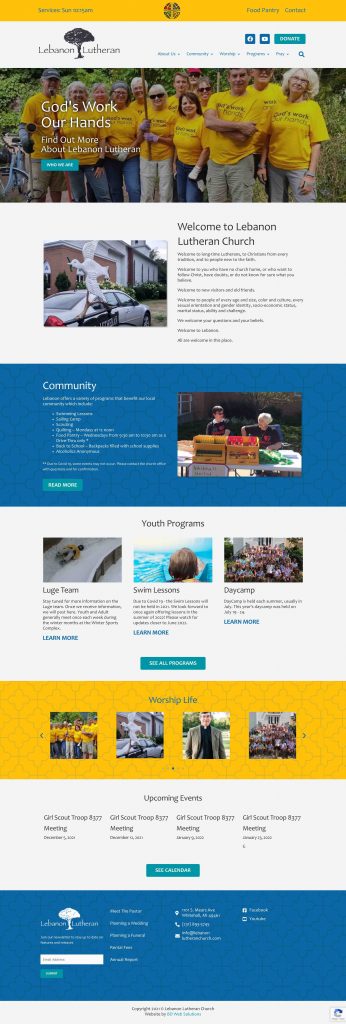 The Lebanon Lutheran Church is celebrating their 100 year anniversary in 2022, and they wanted to update their outdated programs and marketing as part of that. We had an extensive meeting to develop the sitemap and organize the content. From there, I created a custom design to help make it easy for the church to update the events, programs, seminarians, and prayer requests.